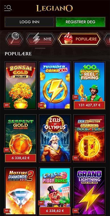 Mobilversjonen av Legiano Casino er utviklet som en progressiv webapp (PWA), så du slipper tungvinte nedlastinger eller en egen appoppføring i App Store. Åpne bare nettstedet i nettleseren, legg det til på startskjermen, og du får en ren, applignende opplevelse.